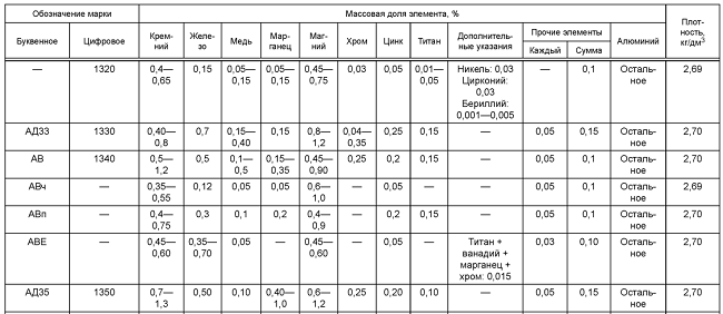 В соответствии с ГОСТ 4784-2019 процентное содержание химических элементов в АД35: