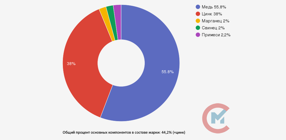 Латунь ЛЦ38МЦ2С2 расшифровывается как сплав, в котором «Л» - это сокращение от латуни, в основном составе которой медь, «Ц38»- обозначение цинка, со среднепроцентным содержанием, в составе марки 38%, «Мц2» обозначение 2% марганца и «С2» - 2% свинца.